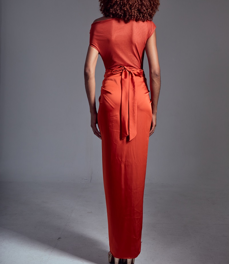 Un conjunto que combina estilo y elegancia en cada detalle. El body realza la silueta con sofisticación, mientras la falda fluida aporta movimiento y distinción. Disponible en color negro y terracota, es la elección ideal para deslumbrar en cualquier ocasión especial.