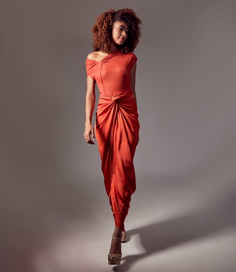 Un diseño que irradia fuerza y elegancia. Con aberturas estratégicas y un detalle central que roba miradas, este vestido es la perfecta mezcla entre sensualidad y sofisticación. Disponible en color café y terracota, es ideal para quienes buscan un look imponente y lleno de carácter en eventos o celebraciones inolvidables.