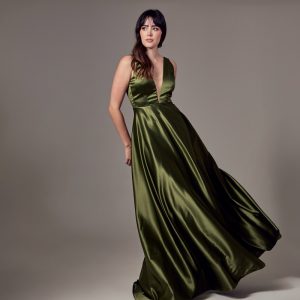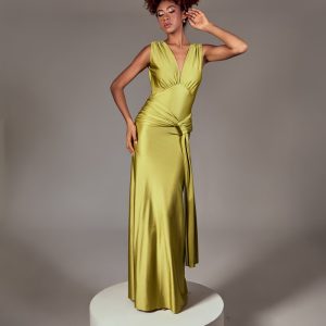 Un diseño pensado para resaltar la feminidad con sutileza. Su escote en V aporta un toque de elegancia, mientras el fruncido trasero realza la silueta con delicadeza. Disponible en verde pistacho oscuro y azul empolvado, es el vestido que combina frescura, estilo y distinción en una sola pieza