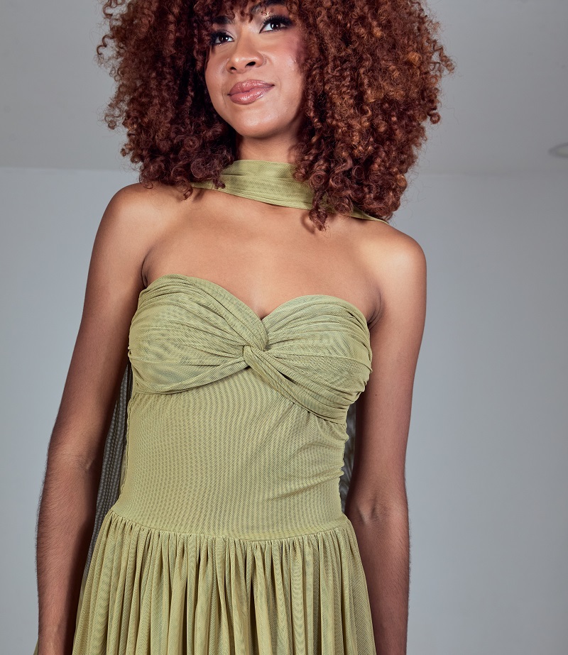 Un diseño coqueto y elegante que resalta con frescura. Su silueta strapless con detalle fruncido en el busto y falda en capas ligeras crea un movimiento delicado y encantador. Disponible en morado y verde pistacho oscuro, es perfecto para quienes buscan un look juvenil, sofisticado y con mucho estilo.